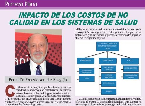 Impacto de los costos de no calidad en los sistemas de salud Por el Dr. Ernesto van der Kooy Continuamente se registran publicaciones en nuestro país donde se reconocen las características de nuestro Sistema de Servicios de Salud, fragmentado inequitativo, ineficiente, etc. En general, y al mismo tiempo se insiste en la necesidad de mayor financiamiento para lograr mejores resultados. En pocas ocasiones se insta a analizar nuestro modelo de atención y las formas de gestión. |